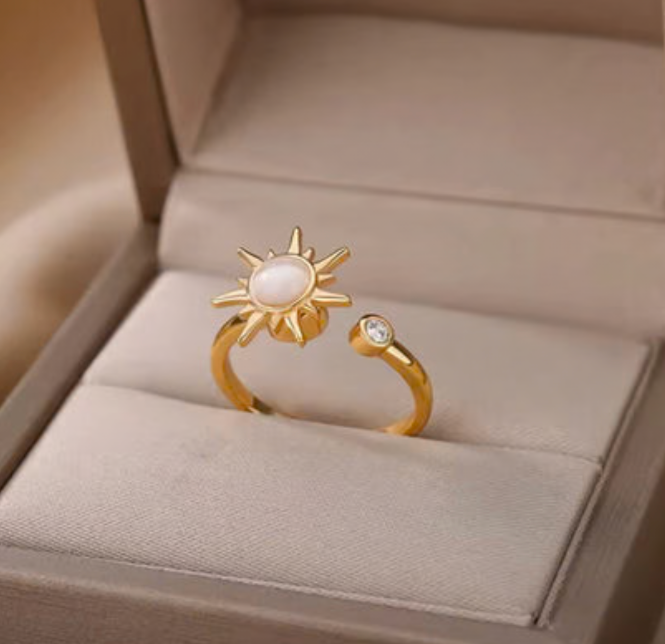La bague Soléa est bien plus qu’un simple bijou : c’est un rayon de soleil au creux de votre main. Son design solaire unique et sa tête rotative en font un accessoire à la fois élégant et apaisant.